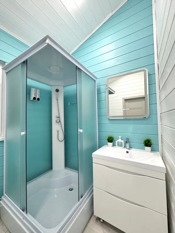 Ванная комната - душевая кабина, унитаз, водонагреватель, фен, свежие полотенца, набор гигиенических средств (мыло, туалетная бумага, шампунь, гель для душа, зубная паста);