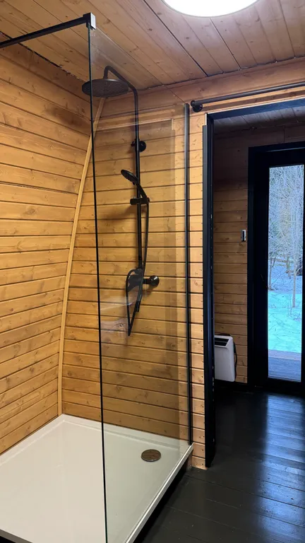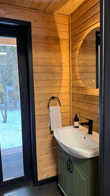 Современная дровяная баня с панорамным окном и видом на лес (3000₽/сутки, дрова входят в стоимость)