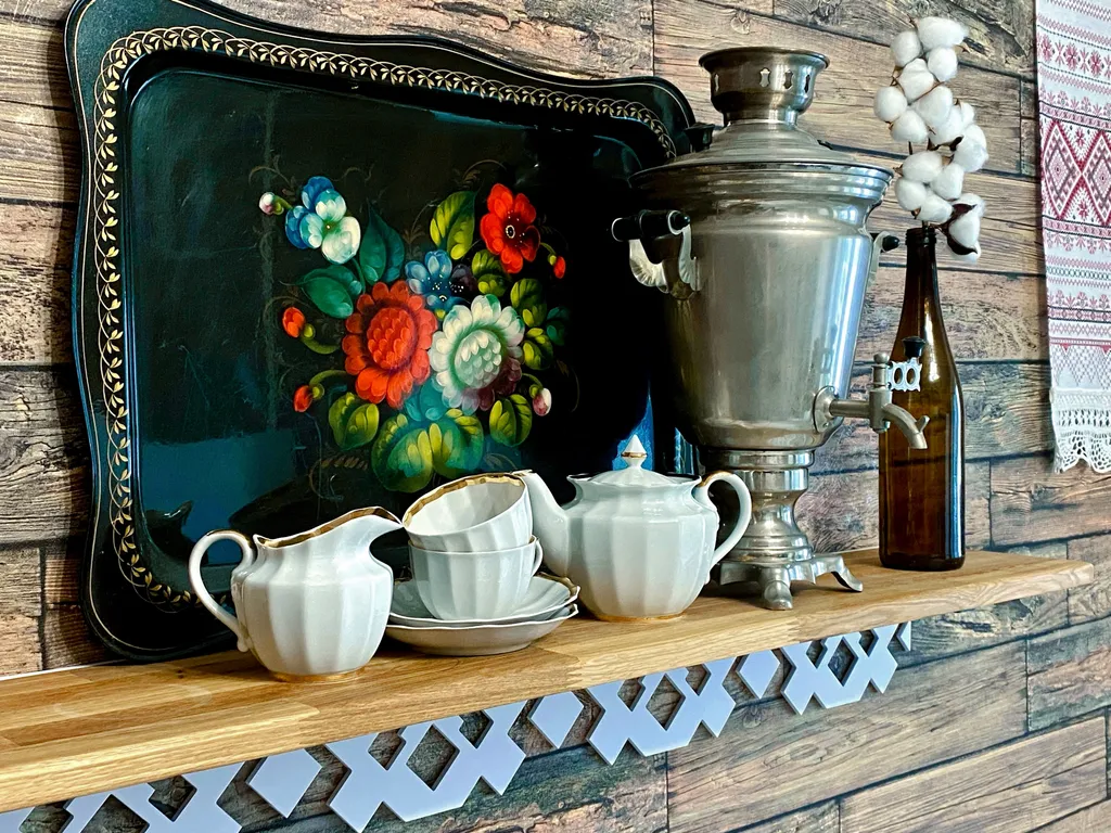 - Настоящий самовар, поднос, чайный сервиз, кофеварка и тостер — для ваших идеальных завтраков!