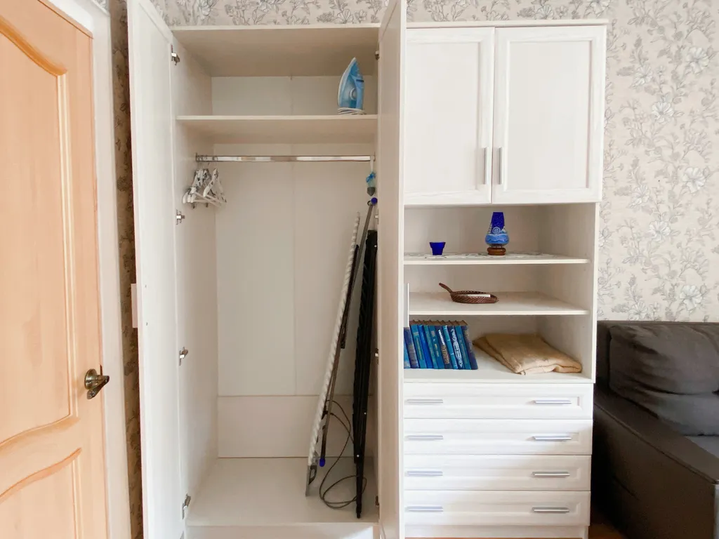 - Стиральная машина, утюг, сушилка и гладильная доска