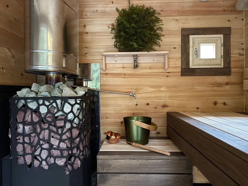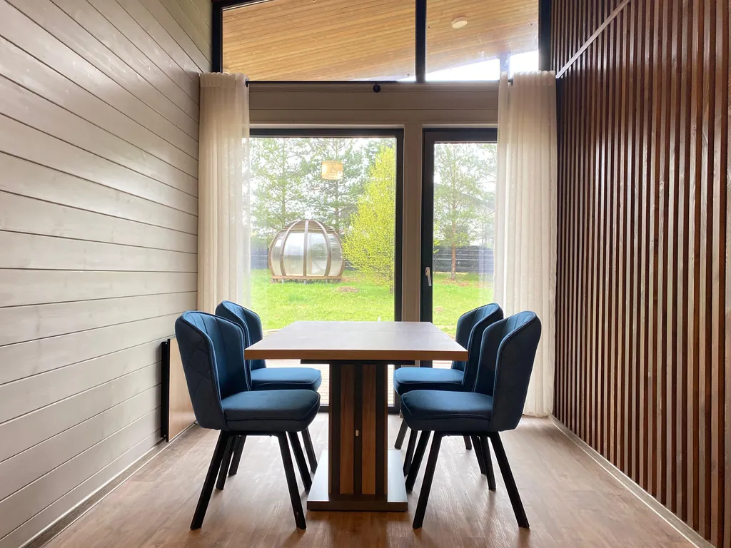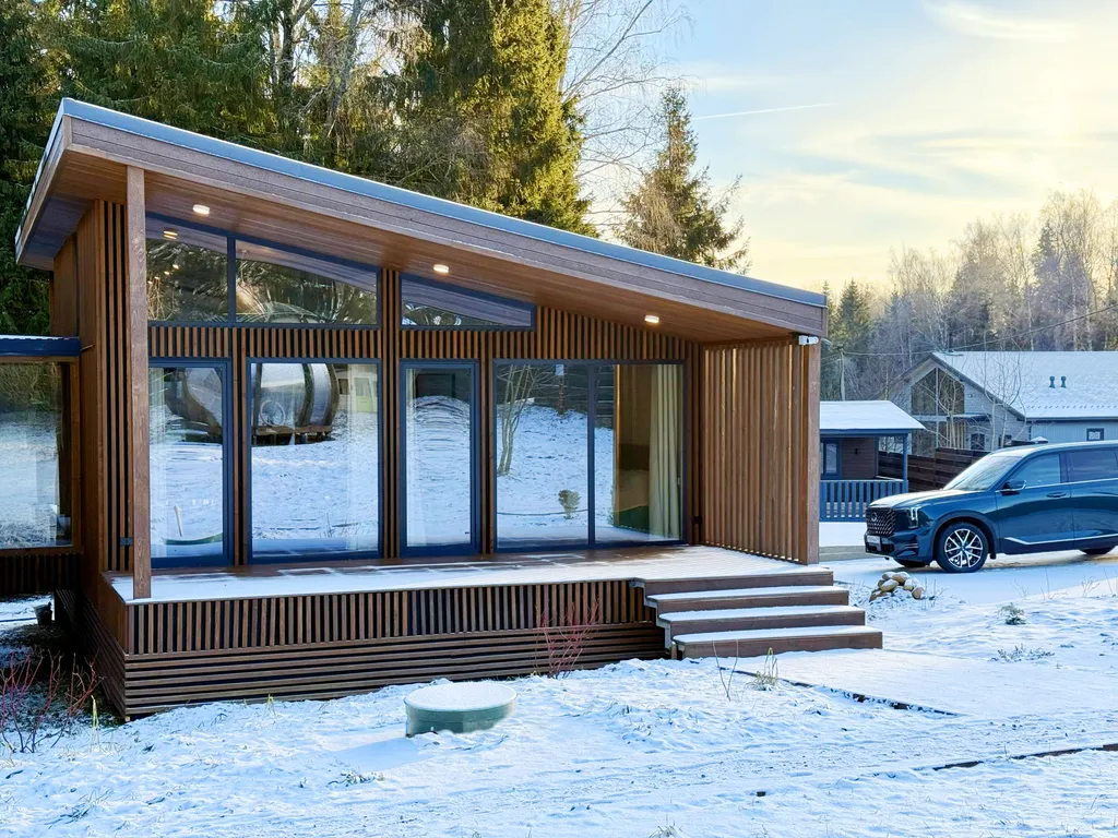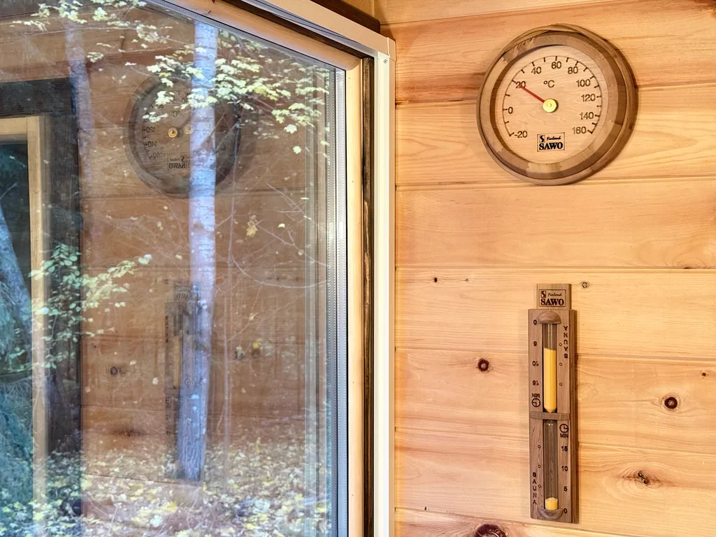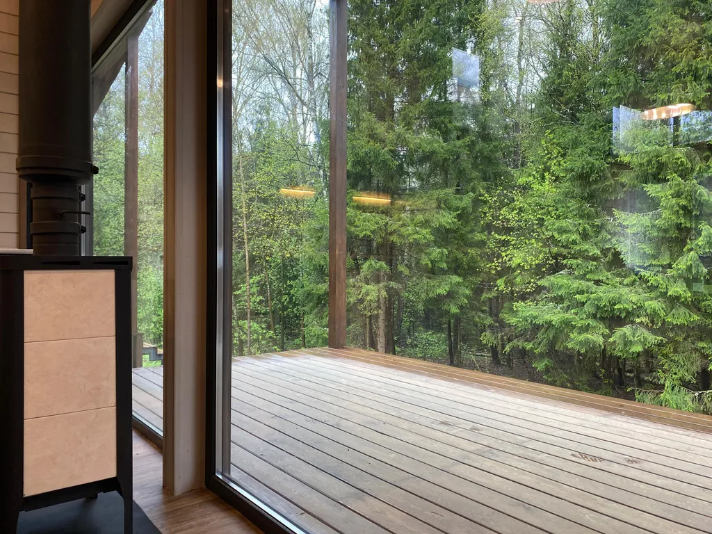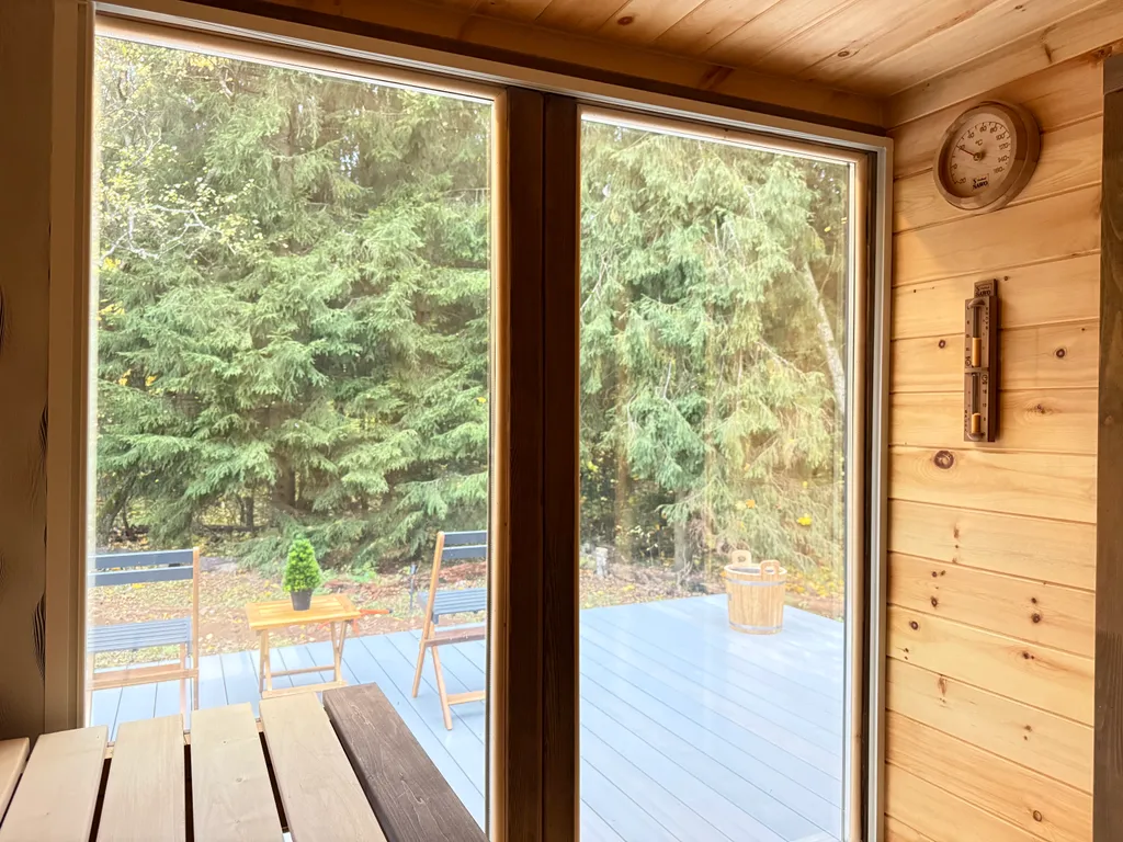 На участке вас ждёт экологичная кедровая баня на дровах с панорамным окном и видом на сосновый лес