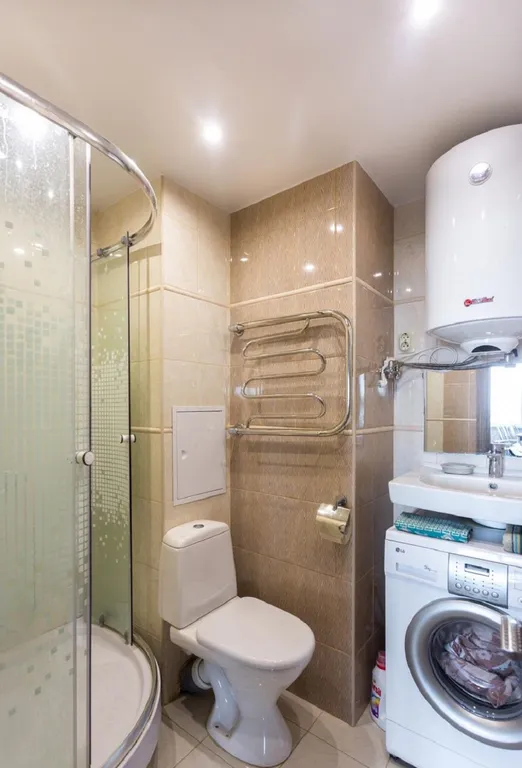 В вашем распоряжении: просторная прихожая с двумя зонами, гостиная – студия с большой кухней и коктейльным островом-баром и отдельной столовой, малой ванной комнатой с душем, просторная спальня с двуспальной кроватью размера «кинг-сайз» и выходом на лаундж-зону с мягкими креслами, большая ванная находится в средней части квартиры, в которой расположена угловая ванна 1,6 м на 1,6 м, гостевая — диванная.