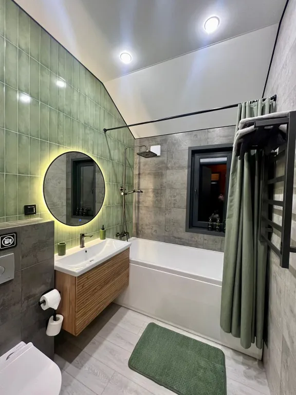 - санузел с большой ванной и окном