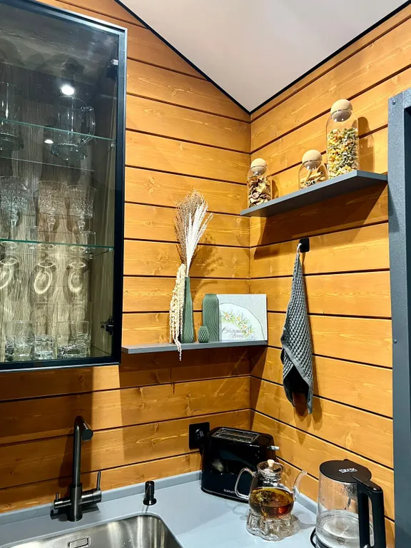 - кухня со встраиваемой техникой и всей необходимой посудой (на 6 персон), есть фильтр для воды, чайник, тостер, кофемашина, (2 капсулы - комплимент, доп. капсулы по 60 руб.), чай черный/зеленый/листовой, растворимый кофе, сахар, соль, специи, подсолнечное масло.